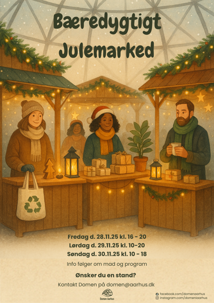 Innovation og Medborgerskab i Aarhus Kommune samler en række aktører i det aarhusianske civilsamfund til bæredygtigt julemarked i Domen, hvor vi går sammen om at sætte fokus på en bæredygtig jul, der ikke går på kompromis med hygge og god stemning.